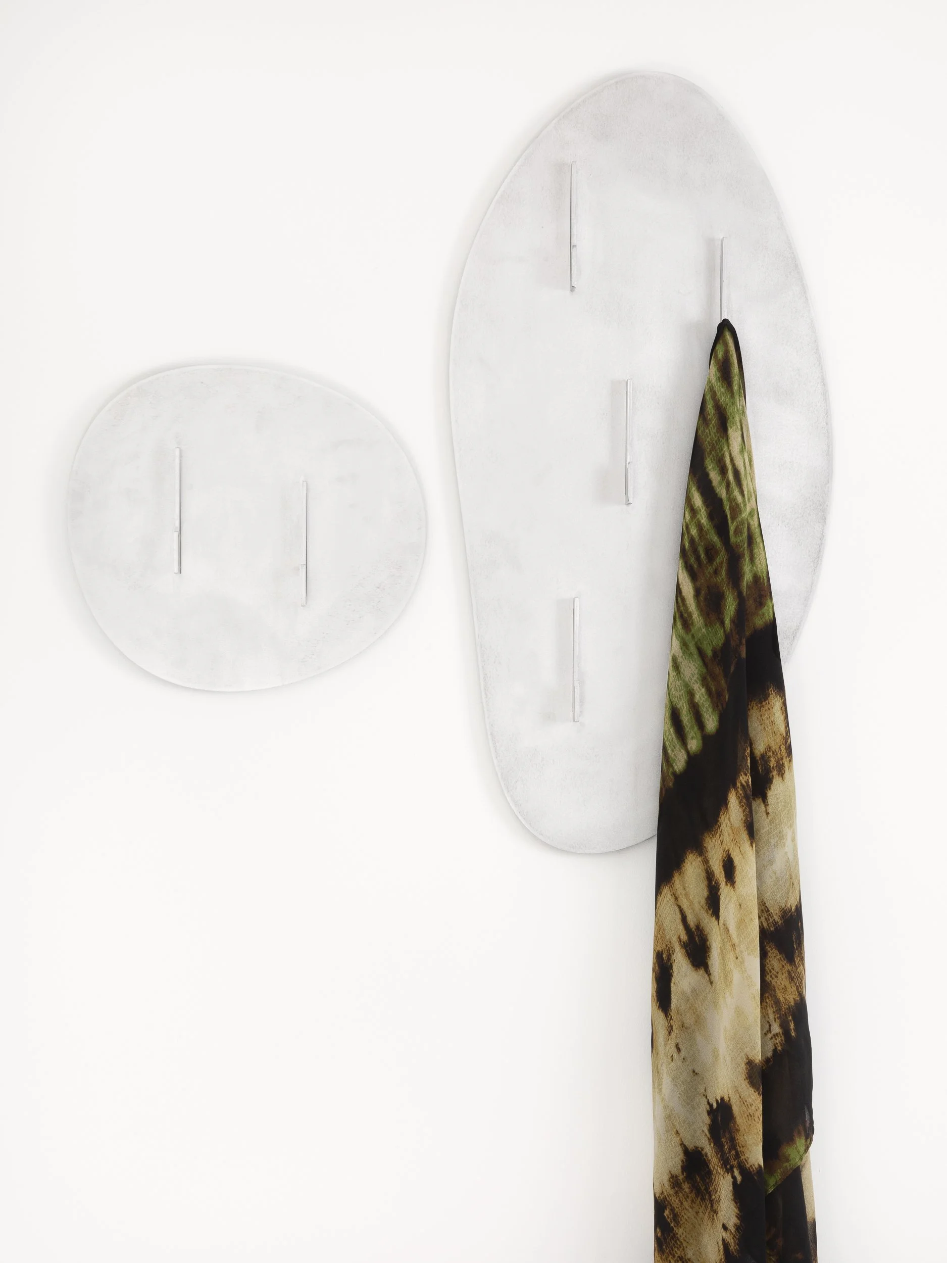Discover the Cobble coat rack designed by this young Belgian studio Fractall. Composed of aluminum plates which together form a dynamic composition on your walls, even when the object is bare.